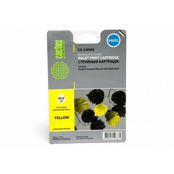 Картридж струйный Cactus CS-C4909 желтый для №940 HP OfficeJet PRO 8000/8500 (30ml)