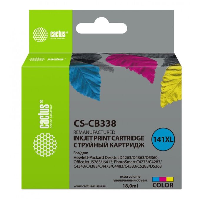 Картридж струйный Cactus CS-CB338 трехцветный для №141XL HP DeskJet D4263/D4363/D5360 (18ml)