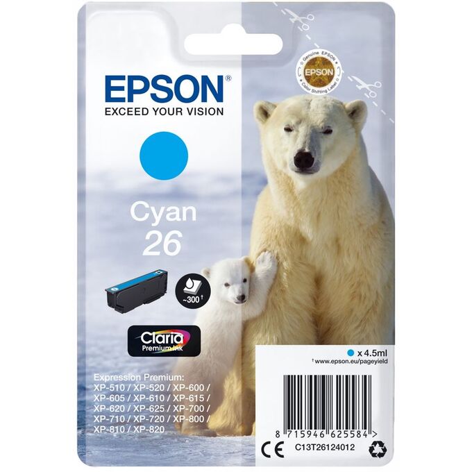 Картридж струйный Epson T2612 C13T26124012 голубой (4.5мл) для Epson XP-600/700/800