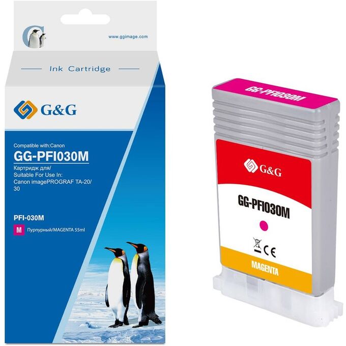 Картридж струйный G&G GG-PFI030M PFI-030M пурпурный 55мл для Canon imagePrograf TA-20/30