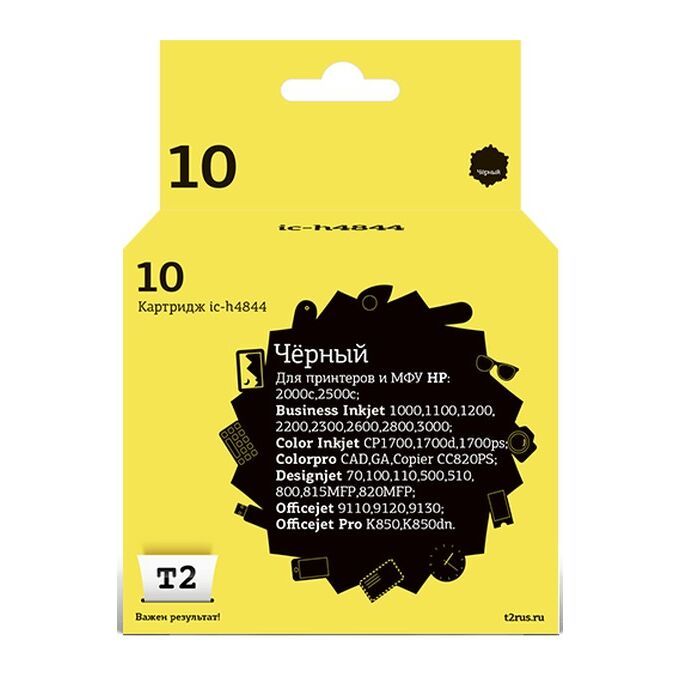 Картридж T2 C4844A (IC-H4844) №10 черный для HP 2000c/Business InkJet 1200/2200/2600/2800/3000/Pro K850/DesignJet 500 1400 стр.