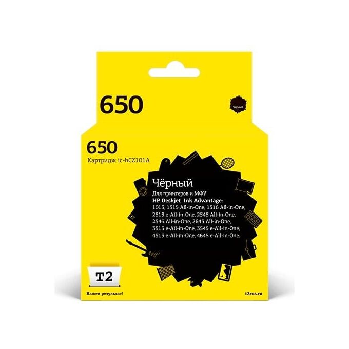 Картридж T2 CZ101AE (IC-HCZ101A) № 650 черный для HP Deskjet Ink Advantage 1015/1515/2515/2545/3515/4515/4615