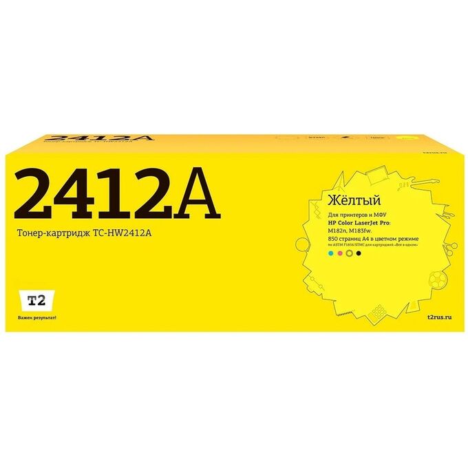 Картридж T2 W2412A (TC-HW2412A) желтый для HP Color LaserJet Pro M182n/M183fw (850 стр.) с чипом
