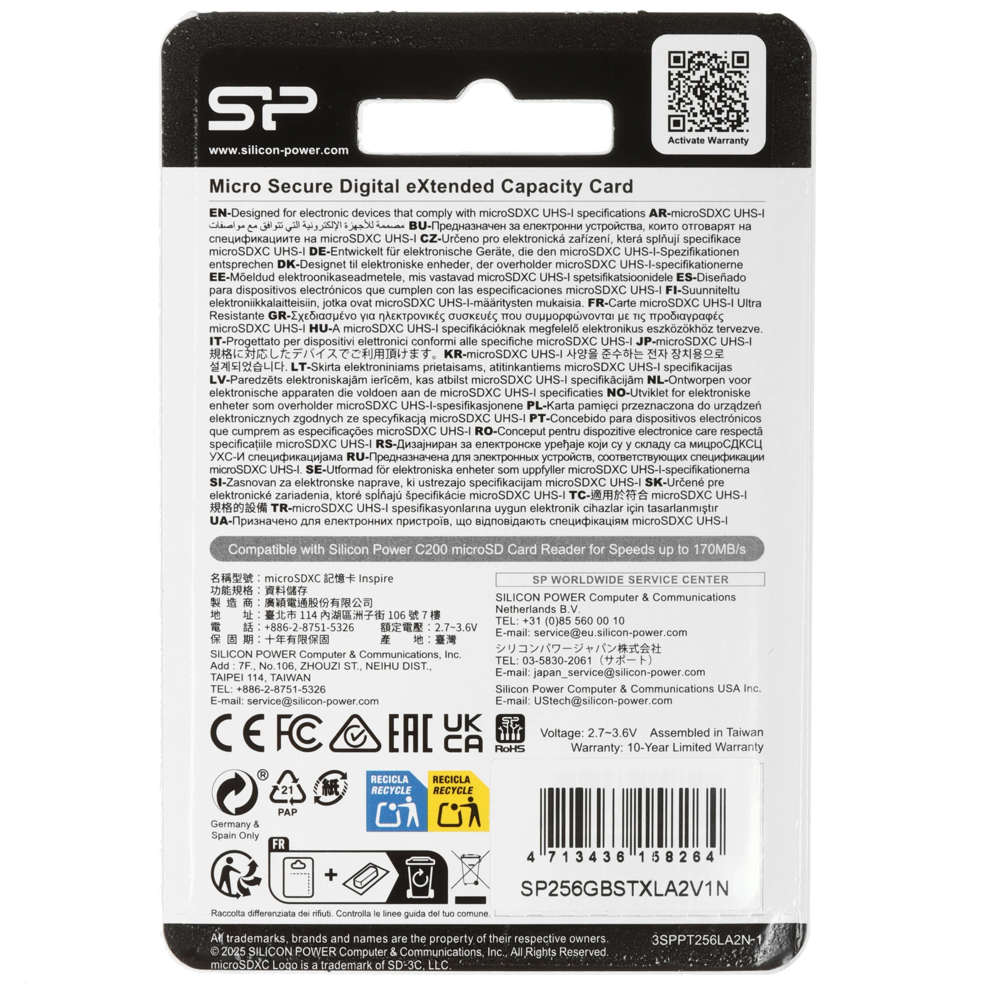 Карта памяти Silicon Power Inspire SP256GBSTXLA2V1NSP microSDXC 256GB V30 A2 + adapter
