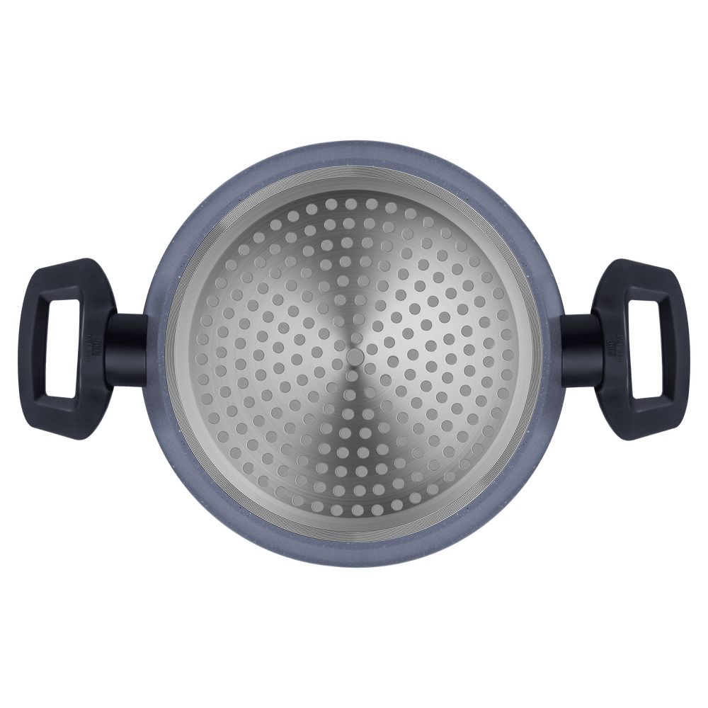 - Трехслойное антипригарное покрытие. Устойчивое к царапинам, полностью безопасное антипригарное покрытие, позволяет готовить блюда без использования большого количества масла. Не содержит свинец и кадмий, без PFOA.