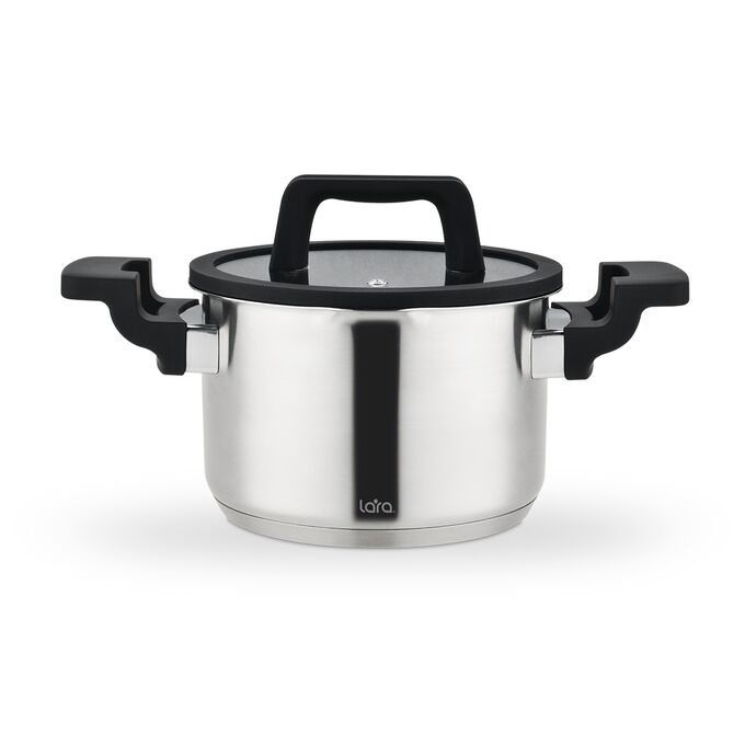 Кастрюля LARA LR02-291 нерж Премиум 18x11,5см 2.9л, индукционное дно, все типы плит, Soft-touch