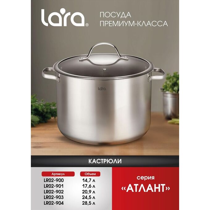 Кастрюля LARA LR02-900 Атлант нерж