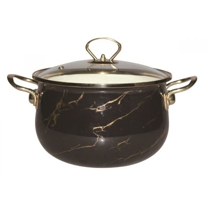 Кастрюля 6,5 л эмалированная со стекл. кр., ручка золото; цвет: чёрный мрамор