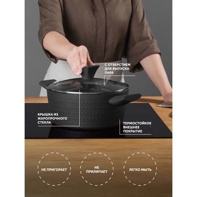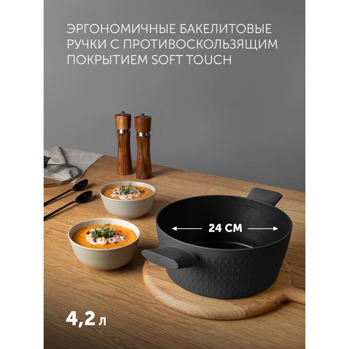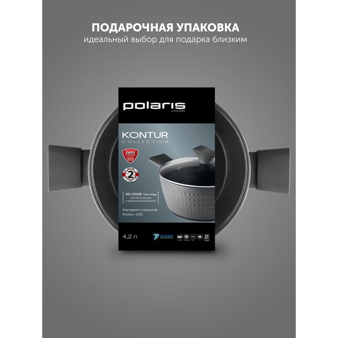 Кастрюля Polaris Kontur 24C 4.2л. d=24см (с крышкой) черный (015082)