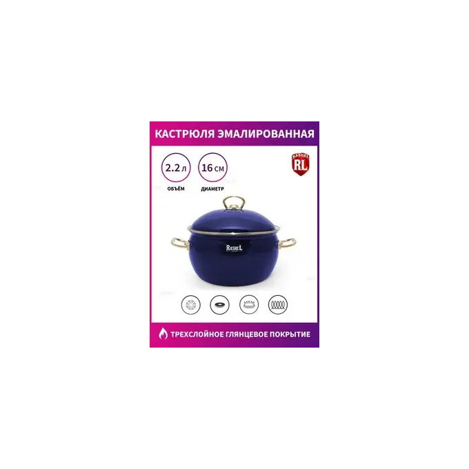 Эмалированная посуда торговой марки Rashel выполнена из стали высокого качества с глянцевым эмалированным покрытием внутри и снаружи. Внешние стенки декорированы рисунками.