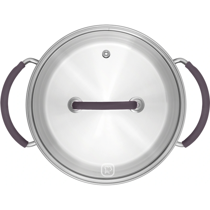 Материал: высококачественная нержавеющая сталь 18/10. Технология: тройное вштампованное, а затем вплавленное дно без воздушных полостей. Материал крышки: термостойкое стекло. Аксессуары: удобные комбинированные: нержавеющая сталь и силикон. Преимущества: эргономичная форма ручек.