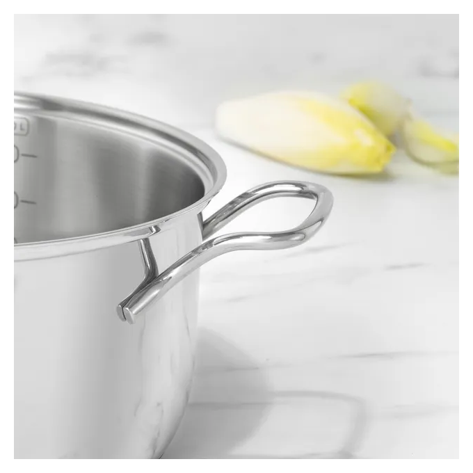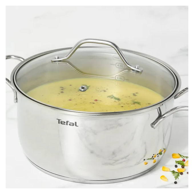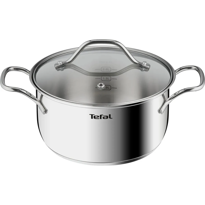 Кастрюля со стеклянной крышкой 20 см из нержавеющей стали объемом 2,9 литра, подходит на все виды плит, в т. ч. индукционных. Можно мыть в посудомоечной машине. Имеет удобные ручки, внутри кастрюли есть мерная шкала, крышка с паровыпуском, двойное капсульное дно. Кастрюля продается в индивидуальной упаковке.