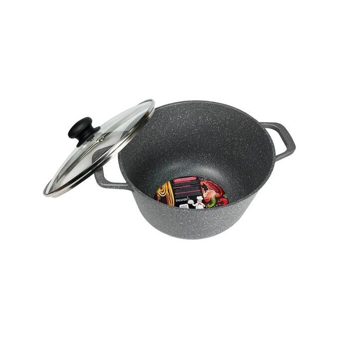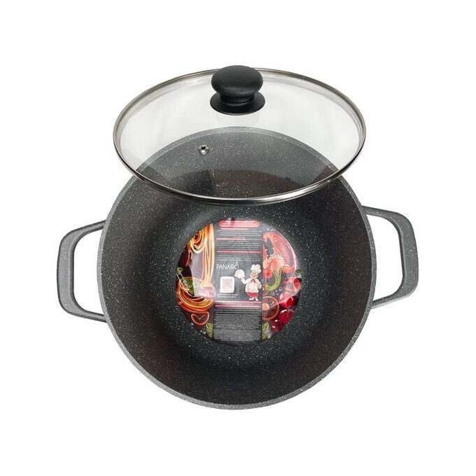 Кастрюля-казан 5 литров от российского производителя посуды компании Panairo. Кастрюля с крышкой 26 см, выполнена из литого алюминия с мраморным антипригарным покрытием. Кастрюля с толстым дном идеально подходит как для газовых, так и для электрических плит, для стеклокерамических, кроме индукционных. Объем кастрюли 5 л, она толстостенная с антипригарным дном. Кастрюля универсальная, подойдет и для варки спагетти и для молока и для супа и для плова. Ручки кастрюли выполнены из алюминия, можно испрользовать в духовке. Используйте при приготовлении деревянные или силиконовые лопатки и тогда алюминиевая кастрюля прослужит вам долгое время. Кастрюля с антипригарным покрытием прослужит на Вашей кухне долгие годы.