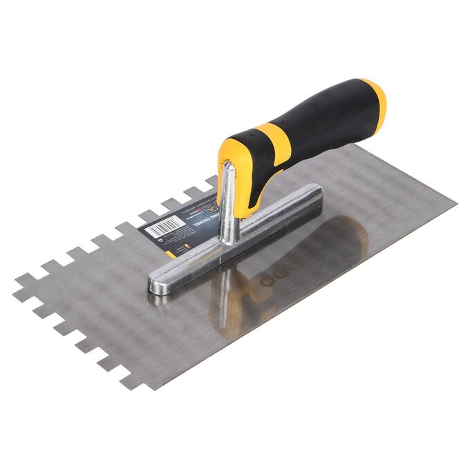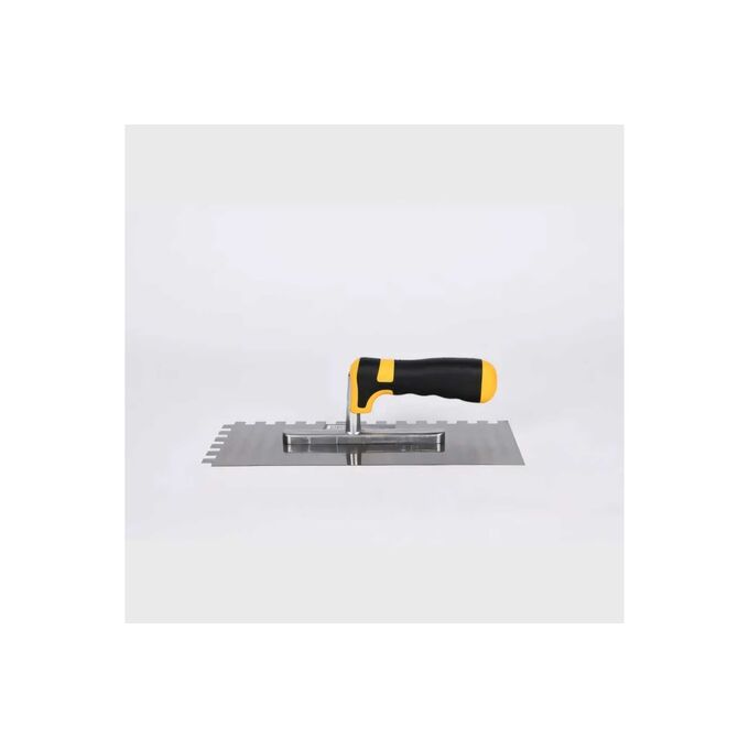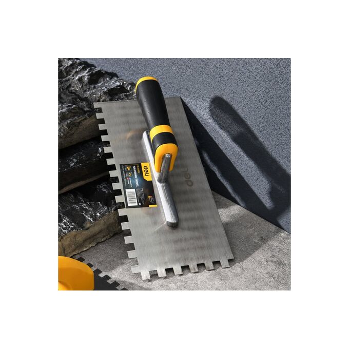 Кельма зубчатая - это специализированный штукатурный инструмент, который используется для нанесения и выравнивания штукатурных смесей на поверхности стен и потолков. Она имеет прямоугольную форму с ручкой на одном конце и зубчатым лезвием на другом. Основное назначение кельмы - это создание ребер неравномерного уплотнения штукатурки на поверхности. Зубчатое лезвие кельмы позволяет наносить штукатурку с ребрами различной глубины и ширины. Это важно для достижения определенных эффектов, таких как создание фактуры или улучшение сцепления между слоями штукатурки. Кельма также используется для выравнивания и сглаживания штукатурных поверхностей. При работе инструментом зубцы проникают в штукатурный слой, улучшая его адгезию к основанию и предотвращая образование пузырьков или трещин. Другой стороной лезвия можно сгладить и ровно распределить штукатурку по поверхности, создавая идеально гладкую отделку. Изготовленная из качественной стали марки 50, кельма зубчатая обеспечивает прочность и долговечность. Ручка инструмента имеет эргономичную форму и резиновое противоскользящее покрытие, которое обеспечивает надежный захват и комфортную работу. Кельма зубчатая является незаменимым инструментом для профессиональных штукатуров и домашних мастеров. Она позволяет достичь высокого качества и ровности отделки поверхностей, а также создавать различные декоративные эффекты.