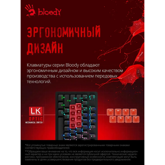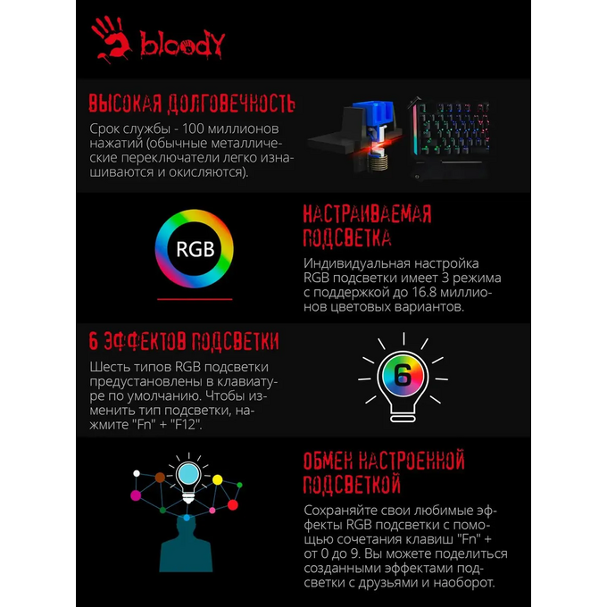 Клавиатура A4Tech Bloody B820R Blue S механическая черный USB for gamer LED (B820R BLACK (BLUE SWITCH))