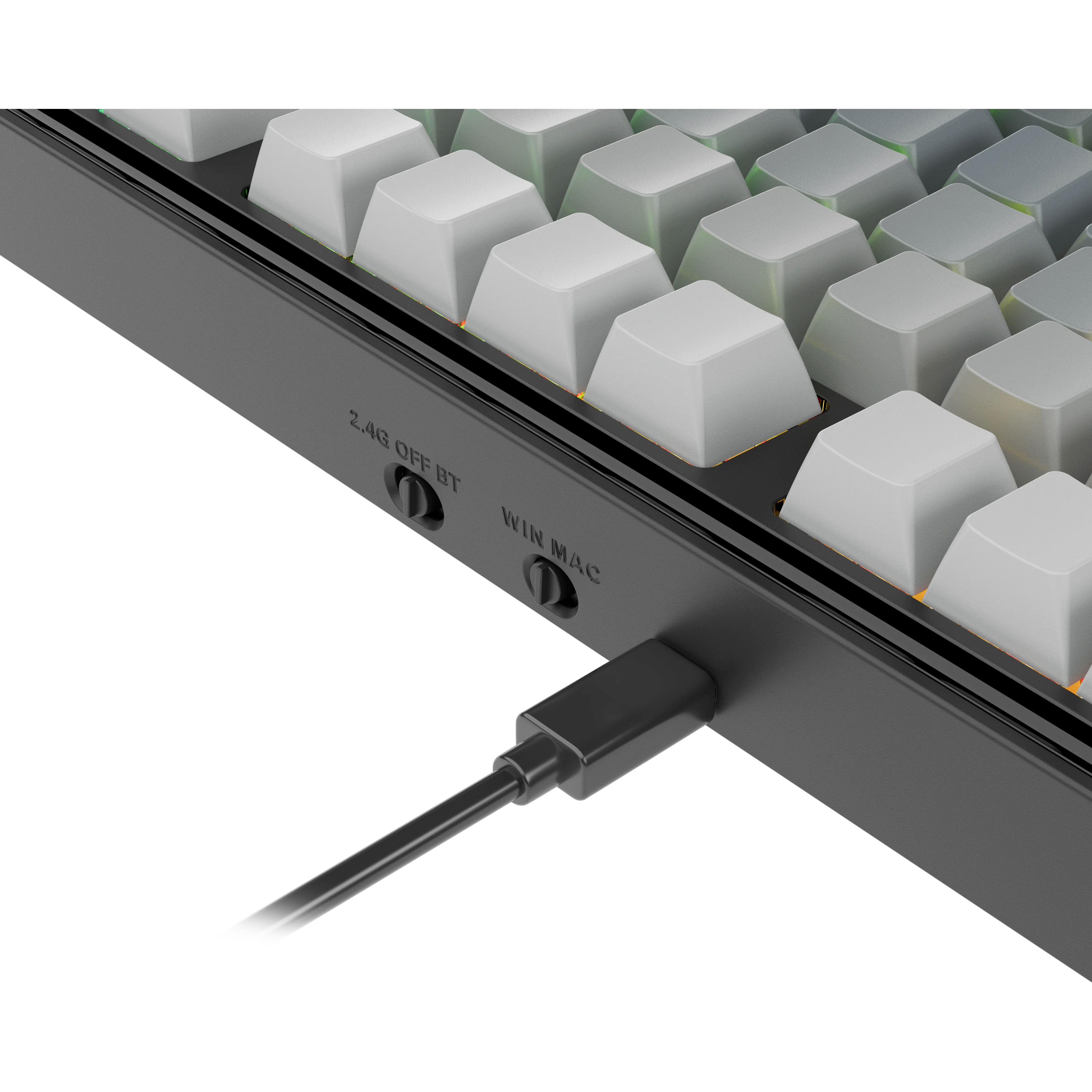 Стильная TKL-клавиатура с градиентными кейкапами, RGB-подсветкой и конструкцией Gasket-mount для плавных и комфортных нажатий. Подключайтесь как удобно — по 2.4 ГГц, Bluetooth или проводу. Меньше места, больше выразительности.