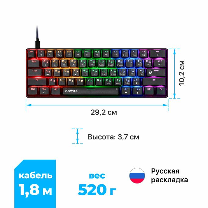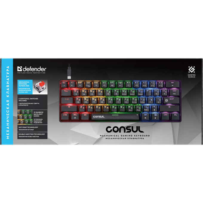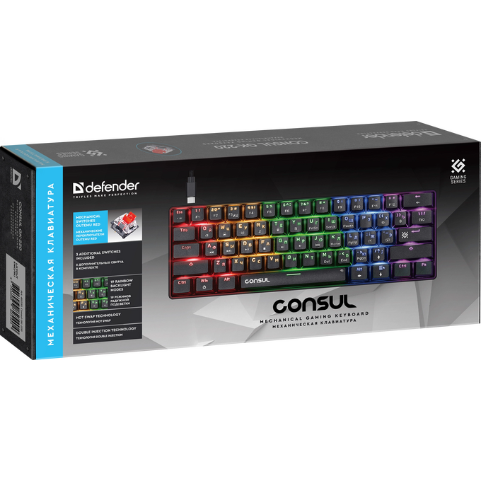 Клавиатура механическая DEFENDER Consul GK-220 RU,Rainbow,61кн, крас.свитчи 45220