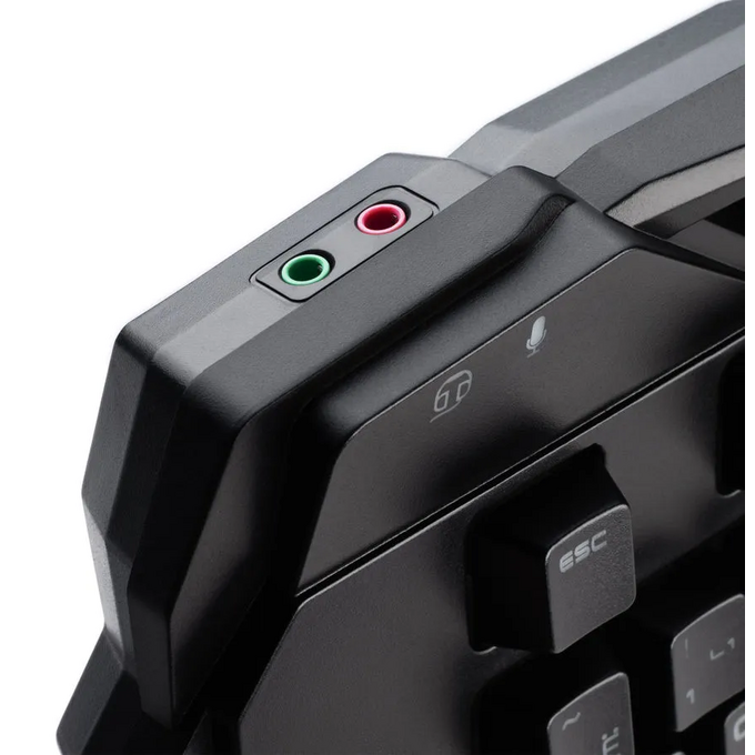 Игровая клавиатура с RGB-подсветкой и настраиваемыми макросами. Подсветка имеет несколько режим работы, в том числе голосовой, когда подсветка реагирует на голос пользователя. Для максимального удобства использования, клавиатура оснащена дополнительными разъемами: USB – A x 1 и AUX 3.5 x 2
