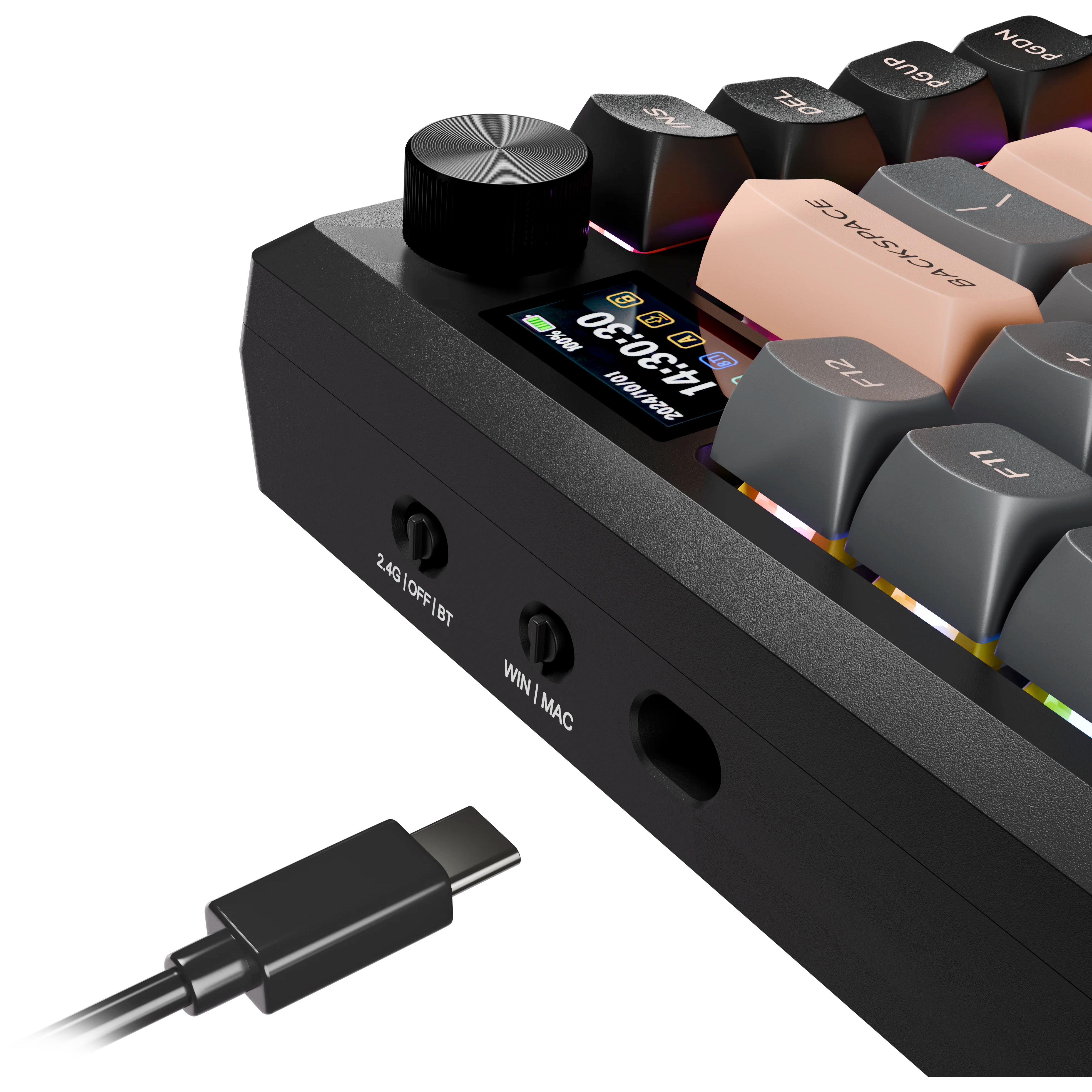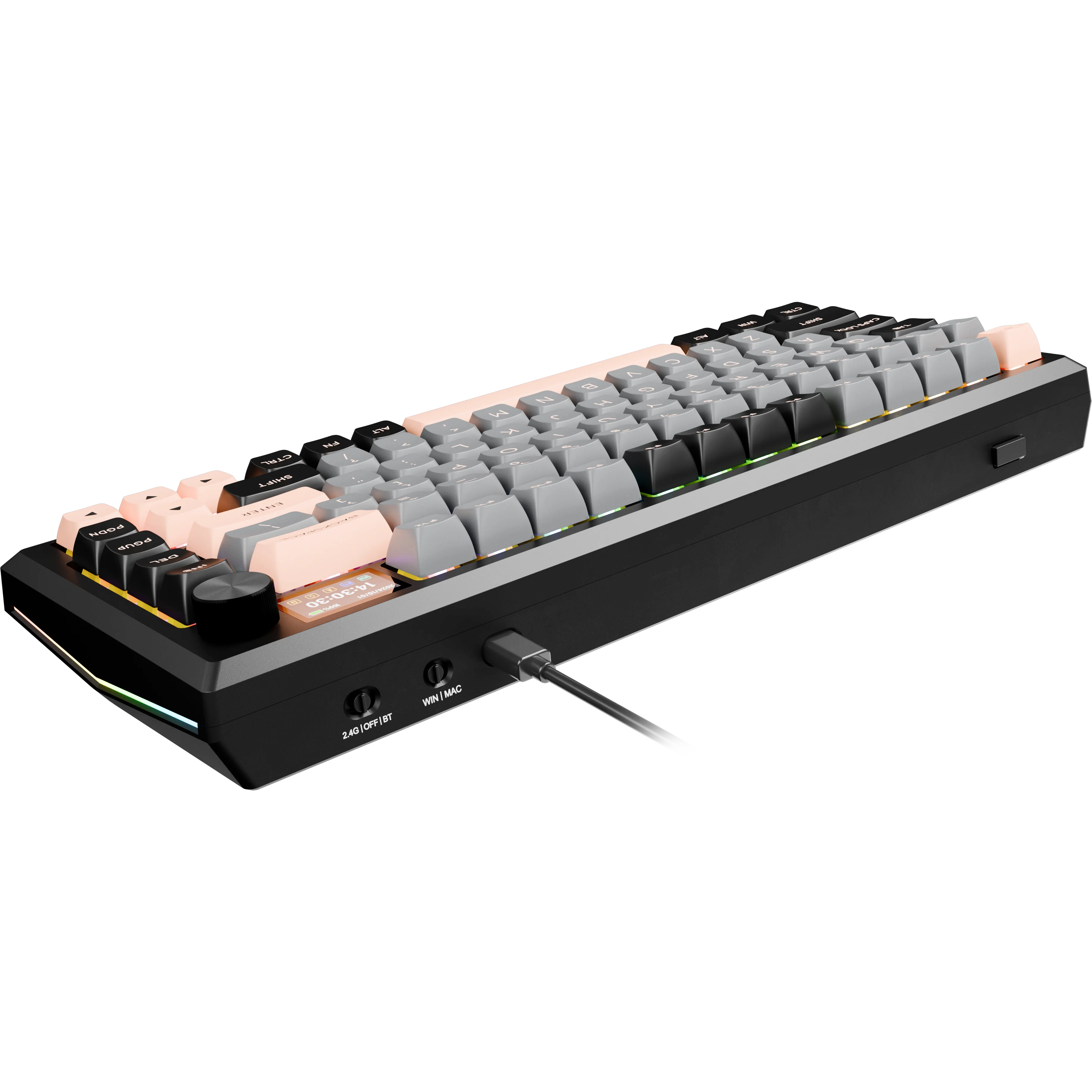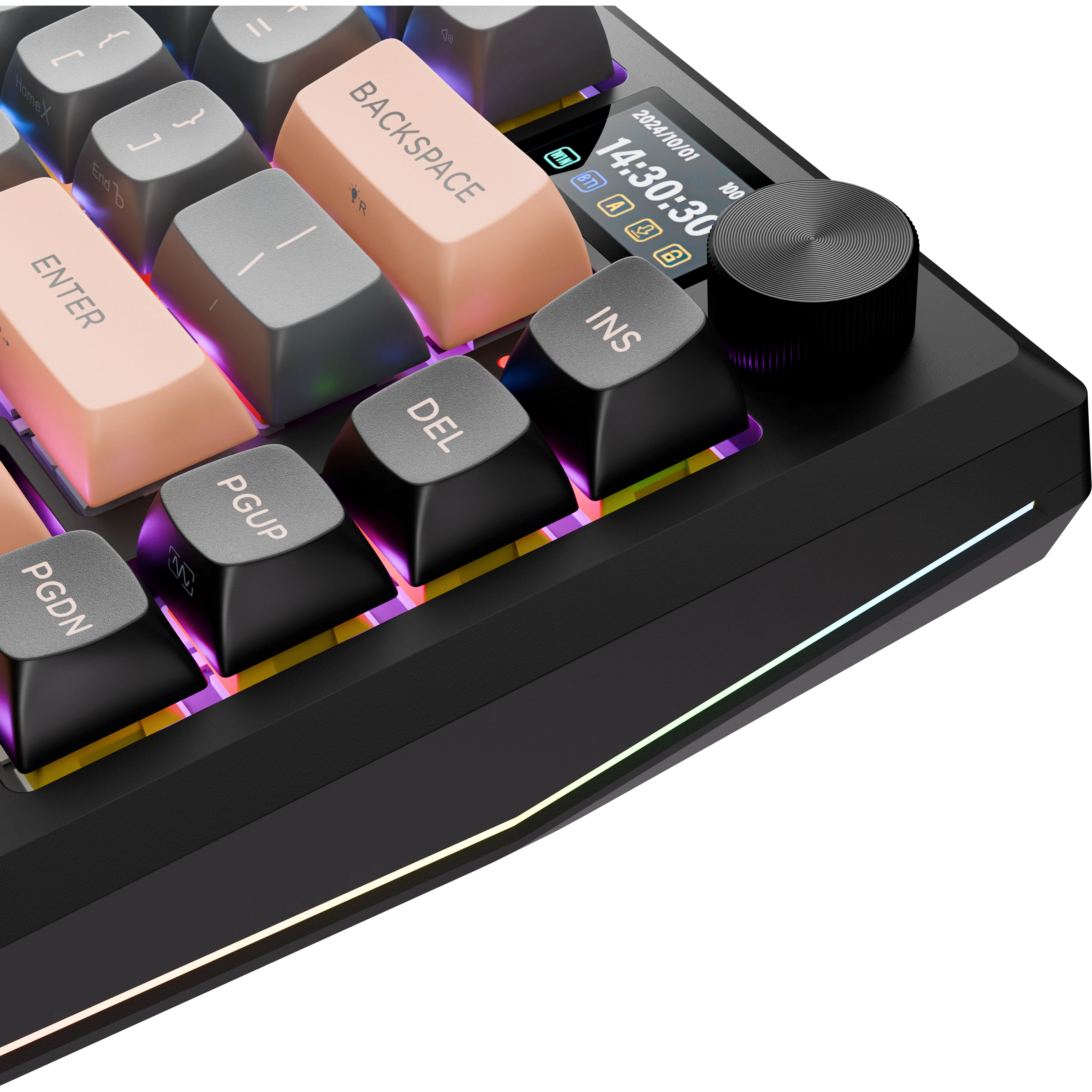 Eclipse Pro — клавиатура с металлическим корпусом, точным LCD-дисплеем и кнопкой-крутилкой. Подключение через 2.4 ГГц, Bluetooth или провод, плавная клавиатура на gasket mount, многослойная шумоизоляция и настраиваемая RGB-подсветка. Комфорт, стабильность и стиль в каждой детали.