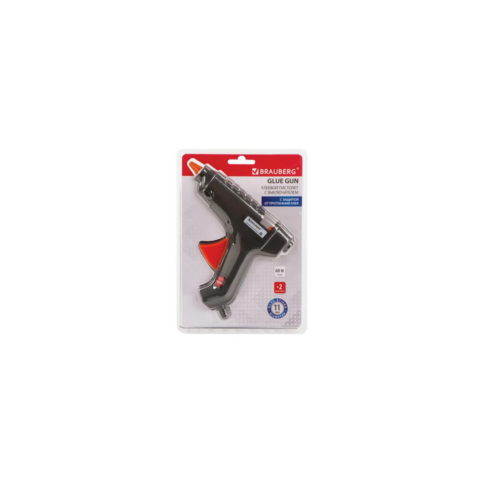 Клеевой пистолет BRAUBERG 671053 60Вт для стержня 11 мм, с выключателем , в блистере