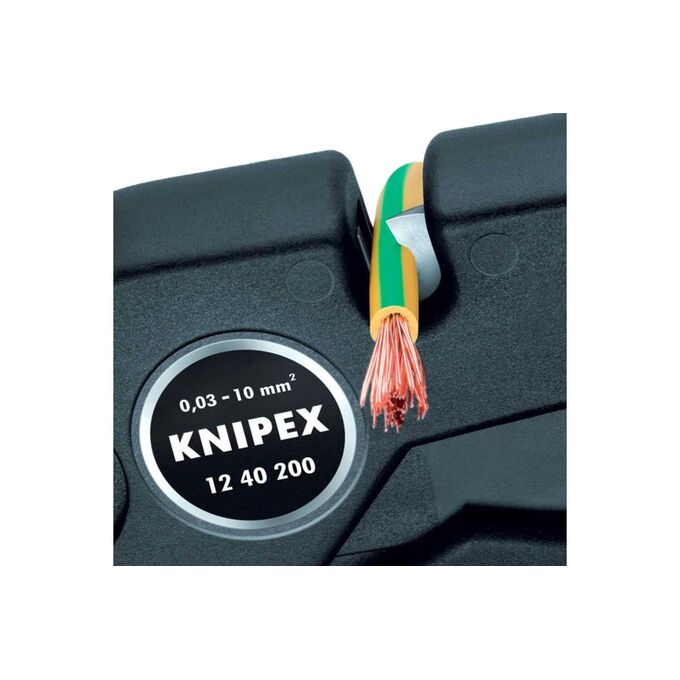 1.Лезвие инструмента для снятия изоляции KKNIPEX KN-1240200 изготовлено из специальной инструментальной стали, закаленной в масле для увеличения прочности.