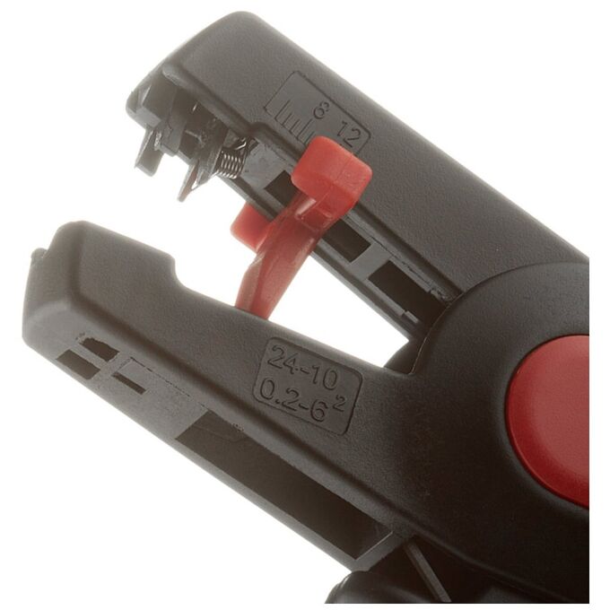 Инструмент для снятия изоляции КВТ WS-06 60409 изготовлен из стекловолокна, что придает легкость и прочность конструкции. Данное приспособление служит для зачистки изоляции различных типов, сечением 0.2–6.0 мм2. Инструмент предназначен для работы с моножильными проводами диаметром до 2 мм. Суженные концы клещей позволяют работать в труднодоступных местах. Автоматическая настройка на нужный размер и толщину изоляции провода делают работу максимально комфортной.