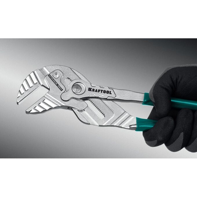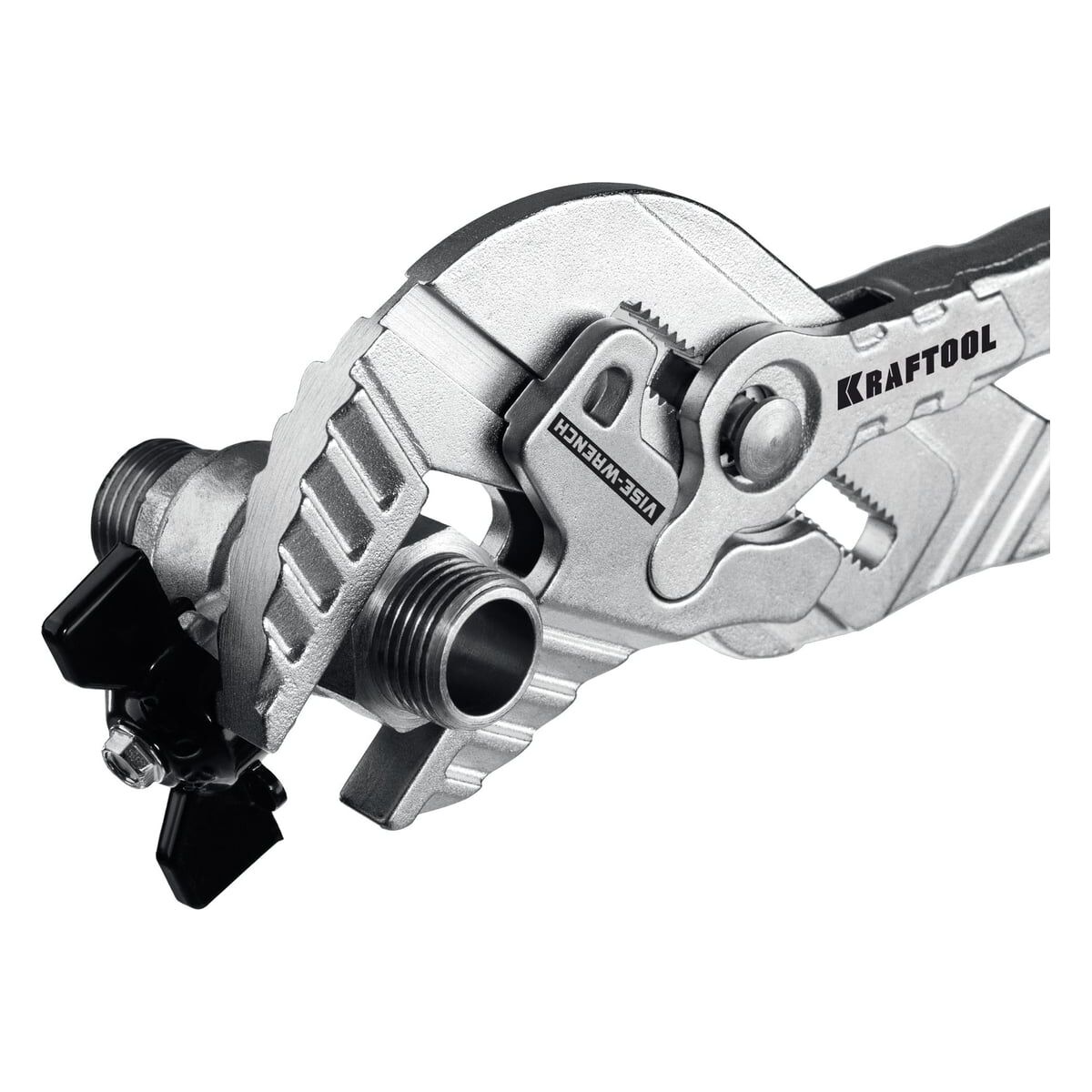 Клещи переставные-гаечный ключ 300 мм KRAFTOOL Vise-Wrench 22068 - профессиональный инструмент с постоянно параллельными губкам. Заменит набор из всех ключей и обеспечит полную сохранность хромированного крепежа.