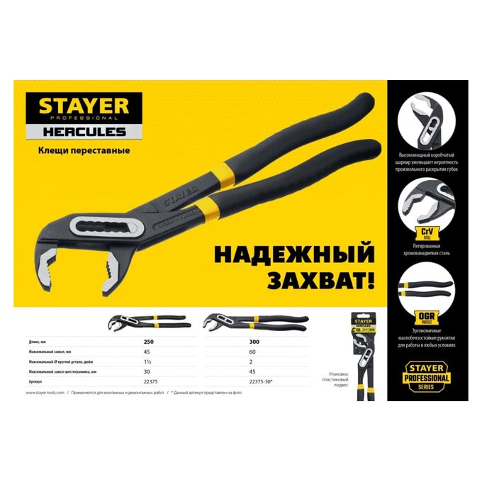 Клещи переставные STAYER Hercules 22375-30 300 мм