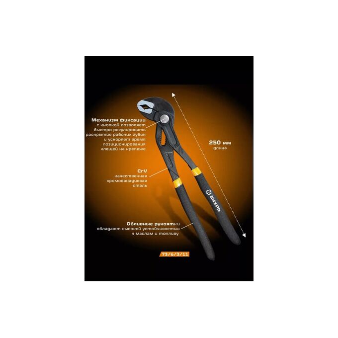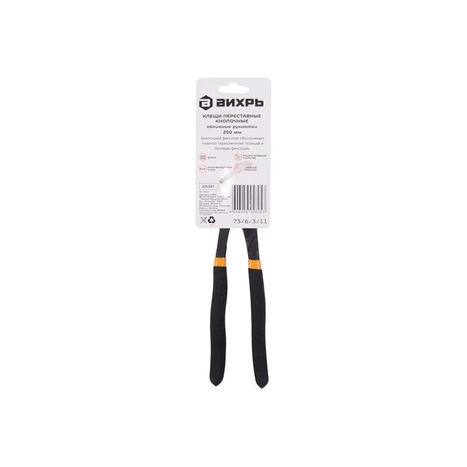 Клещи переставные Вихрь 73/6/3/11 250мм, кнопочные, обливные рукоятки