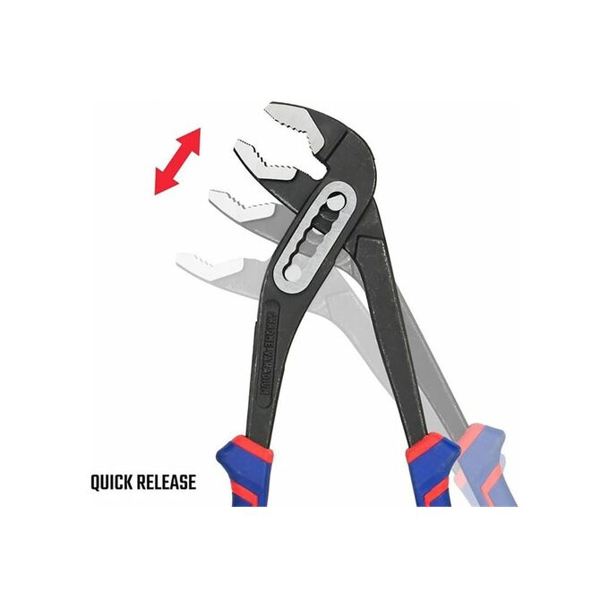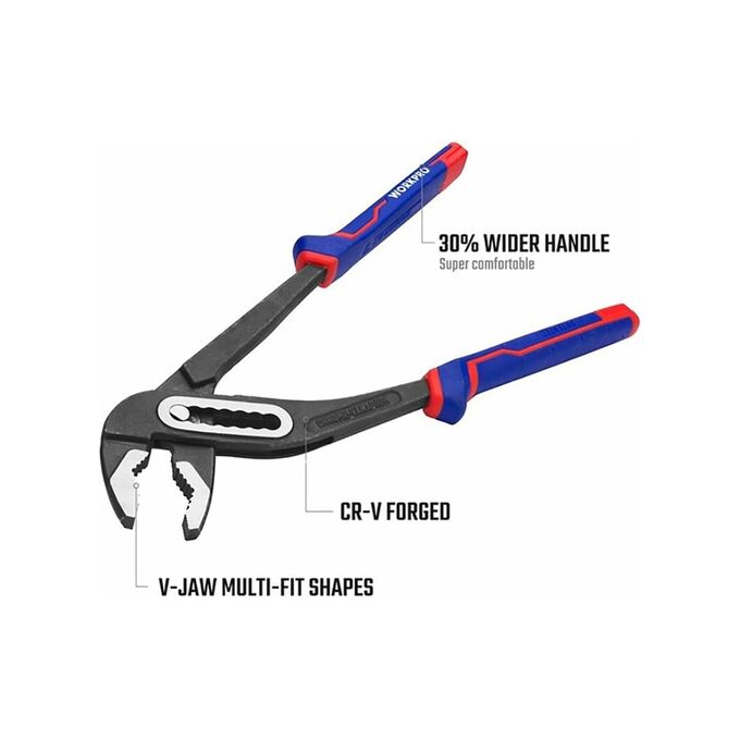 Переставные клещи WORKPRO 250 мм, 10 дюймов, CR-V WP231028 подходят для захвата круглых, плоских, квадратных, шестигранных форм, для сантехнических и слесарных работ. Инструмент выполнен из высококачественной хромованадиевой стали, что обеспечивает прочность, надежность и долгий срок службы. Эргономичные рукоятки гарантируют удобный хват и снижают усталость при работе. Быстрая регулировка позволяет без труда настроить необходимый размер детали. V-образный захват подходит практически для любых видов деталей.