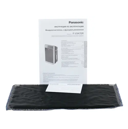 Модель Panasonic F-VXK70R-K снабжена дисплеем и гигростатом. Дополнительно есть функция ионизации. Есть резервуар для воды, объем которого составляет 3.5 л. Функция увлажнения работает на нем в течение 5.5 часов. Предусмотрена ночная функция с пониженным шумообразованием. Все управление климатическим комплексом сенсорное. Весит прибор 10.2 кг.
