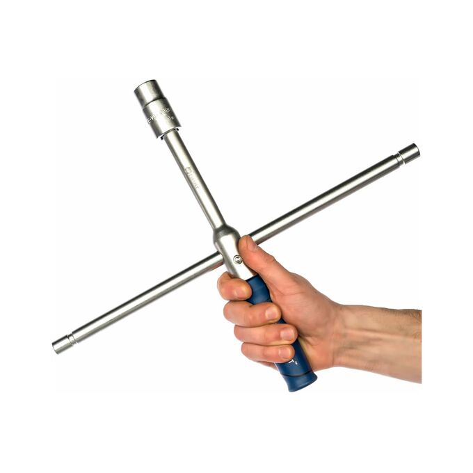 Баллонный складной ключ 17, 19, 21, 23 мм, 1/2, CR-V, чехол КОБАЛЬТ 242-618 удобен для откручивания и закручивания гаек при снятии/установке автомобильных колес. Инструмент выполнен из прочной хромованадиевой стали и имеет комфортную в обхвате рукоятку со специальной накладкой. Для защиты от повреждений при транспортировке и хранении в комплекте предусмотрен чехол для ключа. Размеры: 340 мм - длина ключа, 400 мм - длина воротка.