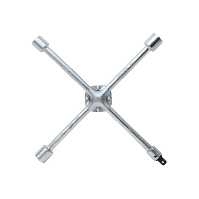 Баллонный ключ Thorvik CRTW40AD крестообразный, усиленный, 17х19х21х22, с переходником 1/2"DR, 400 мм 52511 служит для снятия и установки автомобильных колес, позволяет увеличить рычаг приложения усилий.