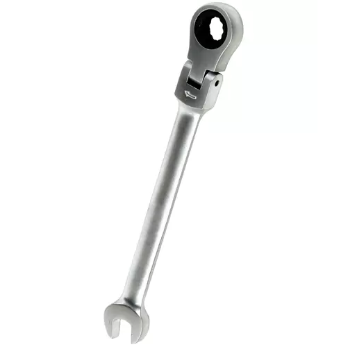 Комбинированный ключ с шарниром изготовлен из хромованадиевой стали с нанесением хромосатинированного покрытия для предотвращения от коррозии и стойкости к износу.