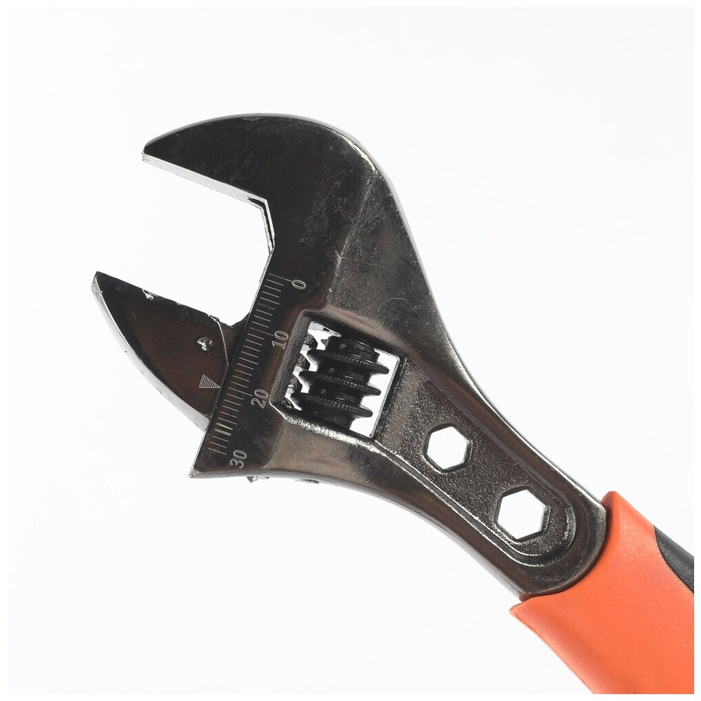 Разводной ключ дополнен двухкомпонентной рукояткой для надежного хвата. Точная подгонка обеспечивает удержание детали.