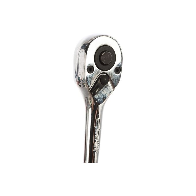 Поверхность трещотки отполирована. Двухкомпонентная рукоятка обеспечивает надежный хват инструмента. Она устойчива к воздействию бензина и технических масел.