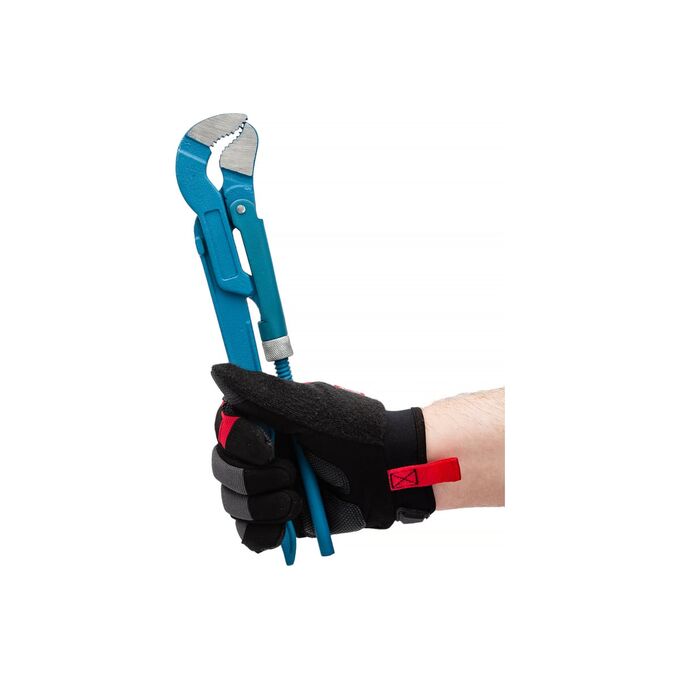 Ключ трубный РемоКолор тип S 43-0-010 используется при монтаже трубопровода в системах газового и водяного снабжения. Корпус представлен 2 рукоятками, соединенными рычажным механизмом. Нижняя рукоять ключа подвижная, с резьбой. Также инструмент оснащен гайкой и направляющей, с помощью которых регулируется раствор губок. Верхняя ручка зафиксирована.