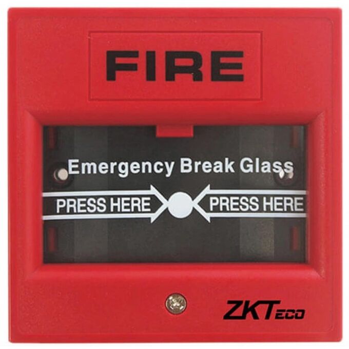 ZKTeco ZKABK900A-R, кнопка аварийного выхода из огнеупорного пластика красного цвета. Для активации кнопки необходимо разбить закрывающую пластину.