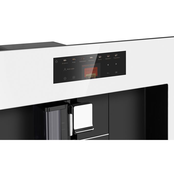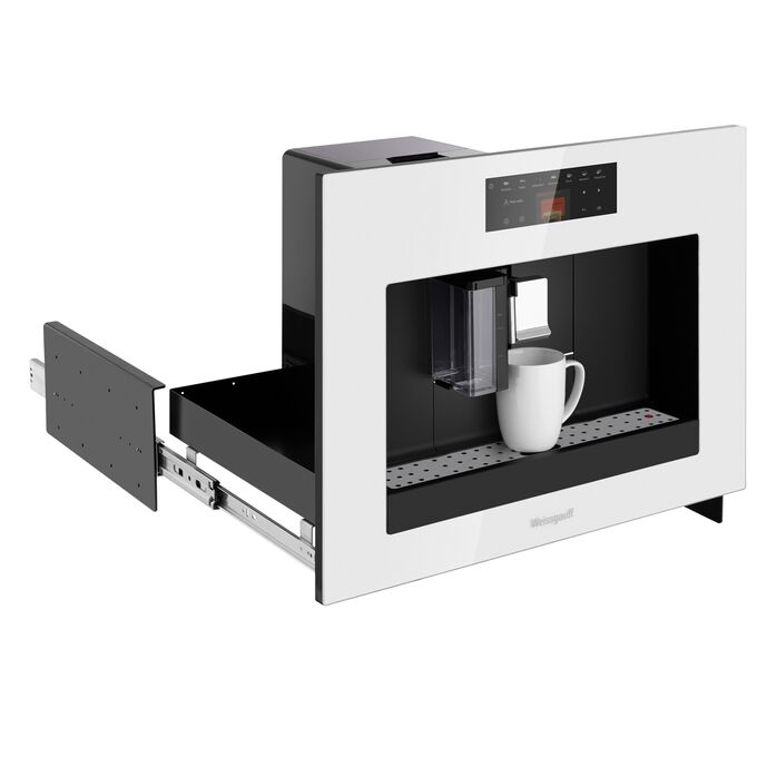 Встраиваемая кофемашина от Weissgauff, выполненная в белом цвете, оснащенная вместительным контейнером для зерен на 200 граммов и емкостью для молотого кофе на 10 порций, обладающая цветным сенсорным дисплеем, системой подачи молока с капучинатором, внешней емкостью для молока, а также 16 заранее предустановленными программами для приготовления ароматного вкуснейшего кофе и напитков прямо на вашей кухне!