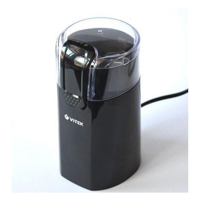 мощность 150Вт; система помола: ротационный нож; вместимость 60г; материал корпуса- пластик; цвет- черный