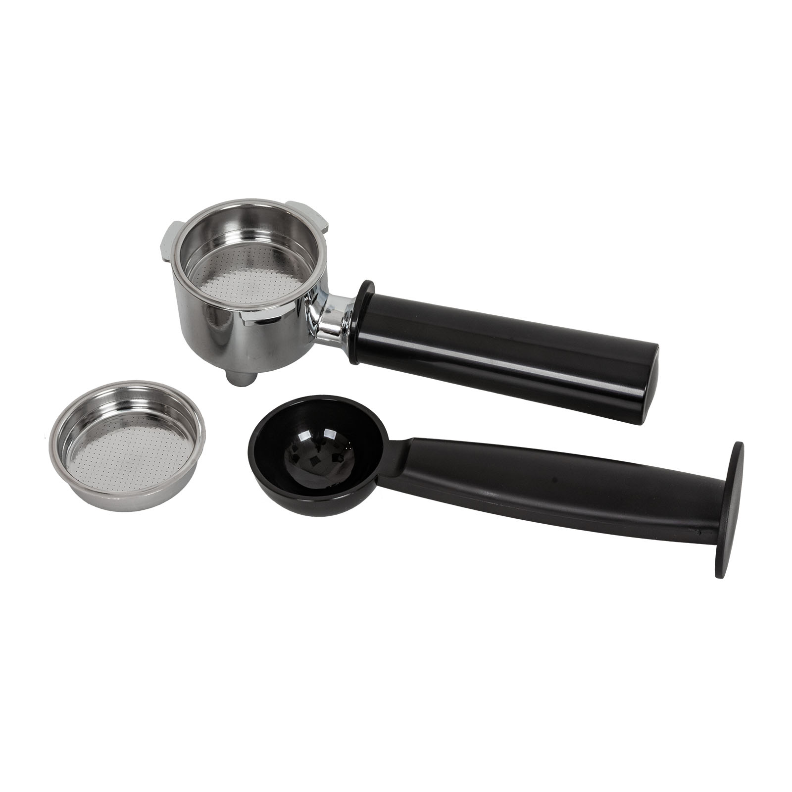 кофеварка, металлический сетчатый фильтр 2 шт. (для стандартной и двойной порции эспрессо), мерная ложка с темпером, лоток для сбора капель со съемной решеткой, гарантийный талон, инструкция на русском языке