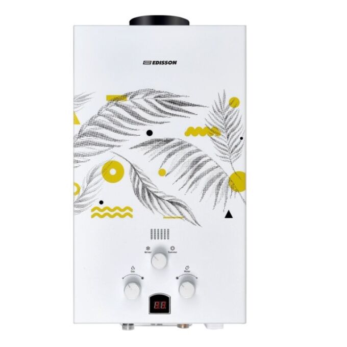 Газовый проточный водонагреватель EDISSON E 20 GD оснащен удобным управлением, благодаря готору можно настроить комфортную температуру воды и интенсивность подачи газа. Текущие параметры отображаются на цифровом дисплее. Модель обладает привлекательным дизайном, передняя панель украшена оригинальным изображением.
