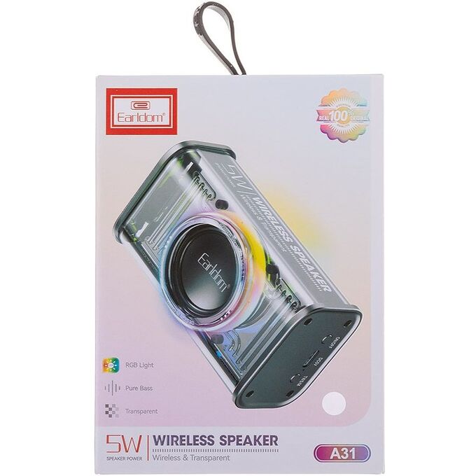 Колонка портативная Earldom ET-A31 Bluetooth/AUX прозрачно-черный