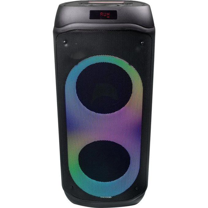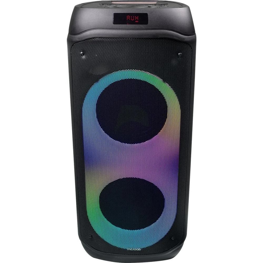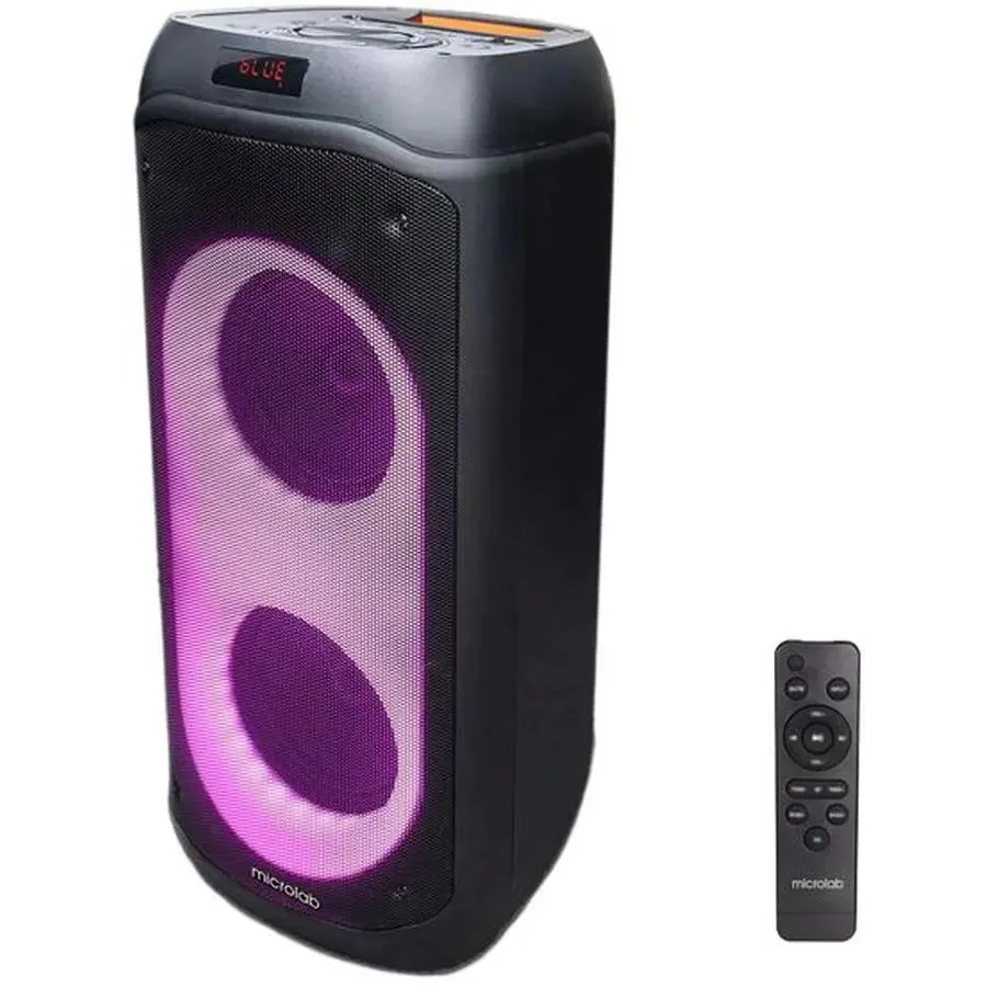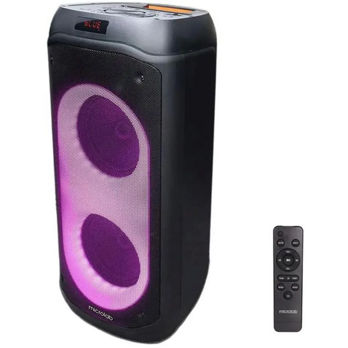 FM-радио, дисплей, караоке, поддержка microSD, ручка, световые эффекты, Многоцветная подсветка и пульт ДУ, Пульт ДУ, поддержка карт памяти,