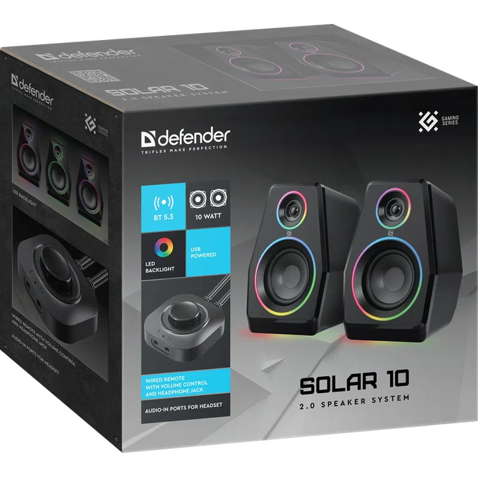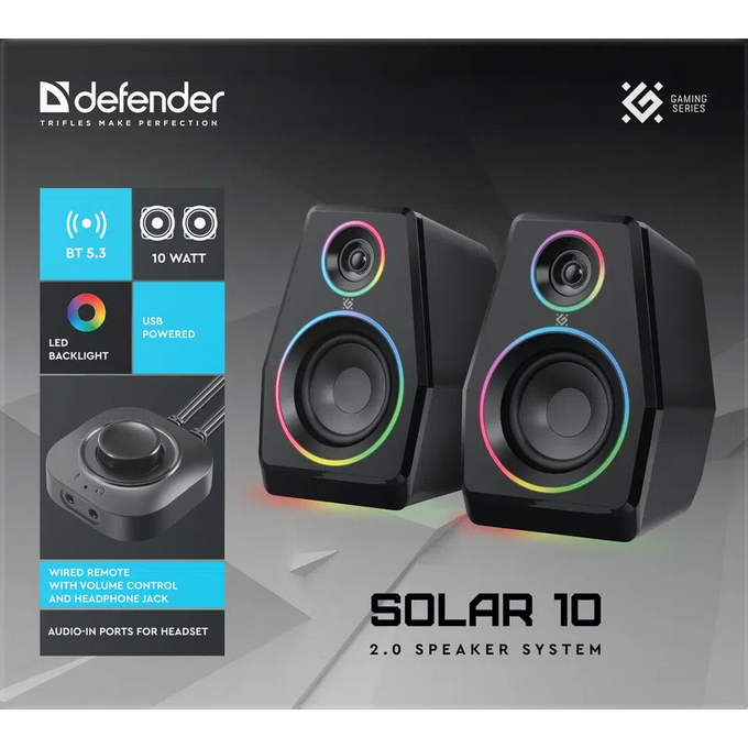 Акустическая 2.0 система DEFENDER Solar 10 10Вт, BT/Light питание от USB (65940)