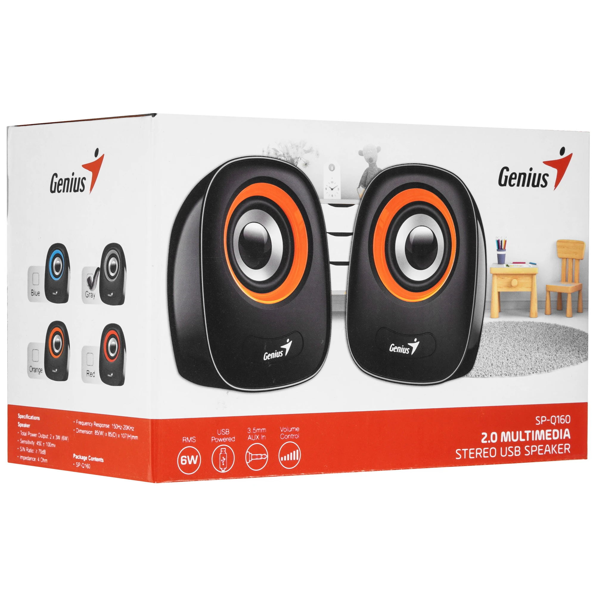 Акустическое оформление Genius SP-Q160 в виде закрытого ящика гарантирует чистое воспроизведение джазовой, инструментальной, классической музыки, а также указывает на компактные размеры аксессуара. При подключении к смартфону, планшету, ноутбуку используется выход 3.5 Jack.
