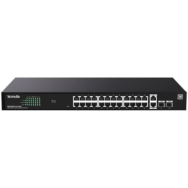 Коммутатор с облачным управлением PoE Tenda TEG2228P-24-410W 26x1Гбит/с, PoE 24х30Вт (до 370Вт), SFP 2x1Гбит/с