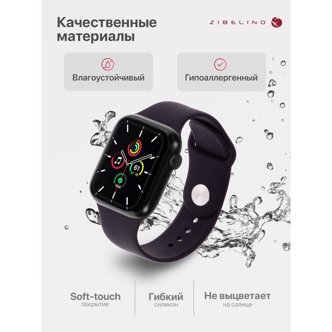 - Комфорт и гигиеничность: гипоаллергенный силикон браслета Apple Watch с soft touch покрытием мягкий, гладкий и приятный на ощупь. Не натирает кожу даже при длительном ношении. Выемки на обратной стороне ремешка отводят влагу.