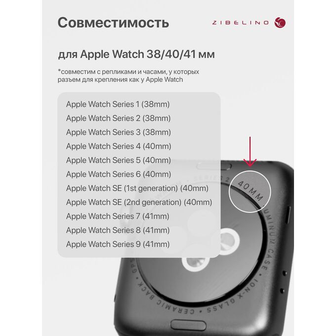 Ремешок подходит для любых часов Apple Watch с размером циферблата 38 мм, 40 мм, 41 мм (Apple Watch 38mm, Apple Watch 40mm, Apple Watch 41mm).