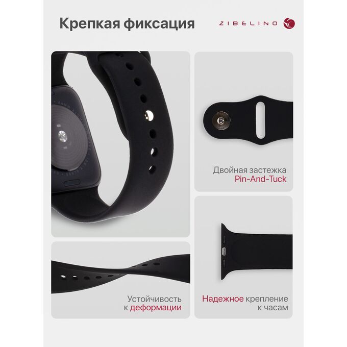 - Надежная фиксация на запястье: инновационная застежка pin-and-tuck (англ. «застежка-булавка») обеспечивает идеальную посадку на руке. Ремень Эпл Вотч не расстегнется в неподходящий момент.